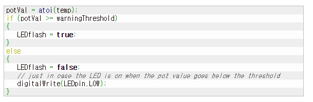 포트 값이 임계값을 초과하면 LED가 깜박이기 시작합니다.
