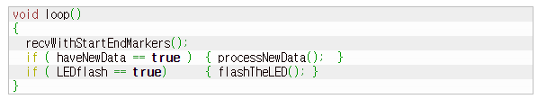 슬레이브 스케치에서 recvWithStartEndMarkers() 함수는 readSerial()을 대체합니다.