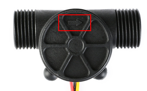 YF-S201 액체 유량센서는 뒷면을 확인하면 화살표 방향이 표시되어 있습니다