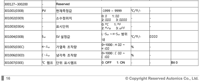 이에 실험적으로 제조사에 매뉴얼 따른 메모리 주소를 16진수로 바꾸어 전 저송하였다.