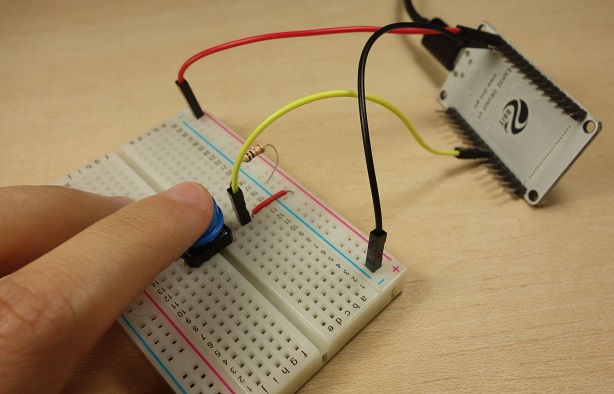 이 예를 테스트하려면 다음 회로도에 따라 푸시버튼을 ESP32에 연결하십시오.