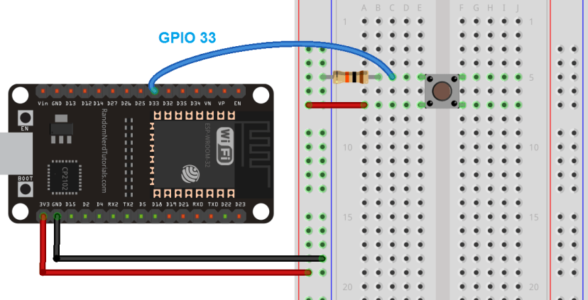 GPIO 33 대신 RTC GPIO 핀을 사용하여 버튼을 연결할 수도 있습니다.