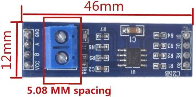 MAX485 칩셋을 보호하기 위한 "스트래핑"이 없는 보드입니다.