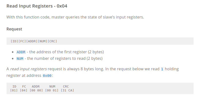 * Reading Routine 10 Registers (Input Registers) 0x04