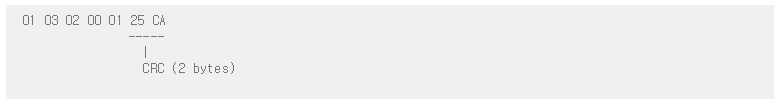 모든 Modbus RTU 메시지(프레임) 는 끝에 2개의 CRC 바이트를 포함합니다.