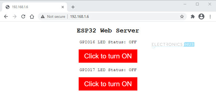 다음은 ESP32의 웹 서버에 액세스하는 노트북의 Chrome 웹 브라우저 스크린샷입니다.